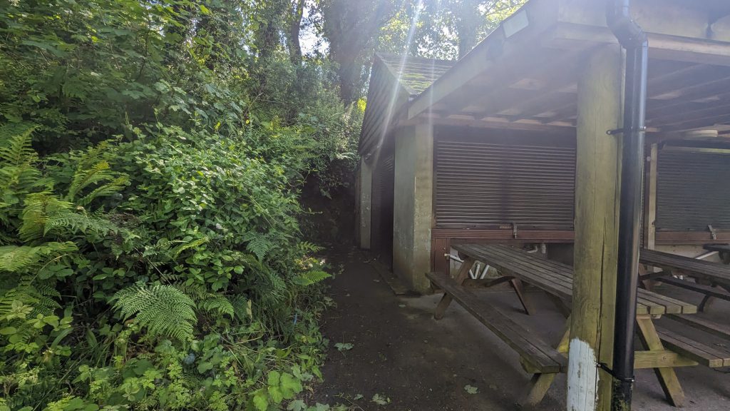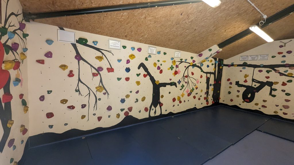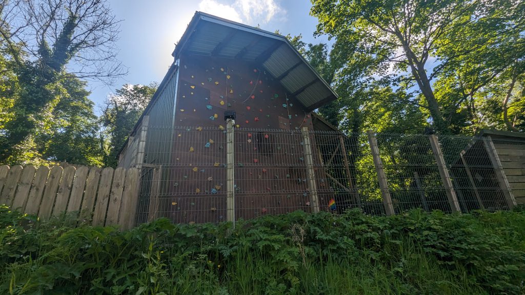 Of the path down site, we have access to our lower stores along with access to our outdoor climbing wall and accessible wall / ramp for abseiling. Below this we have our tomahawk throwing range.